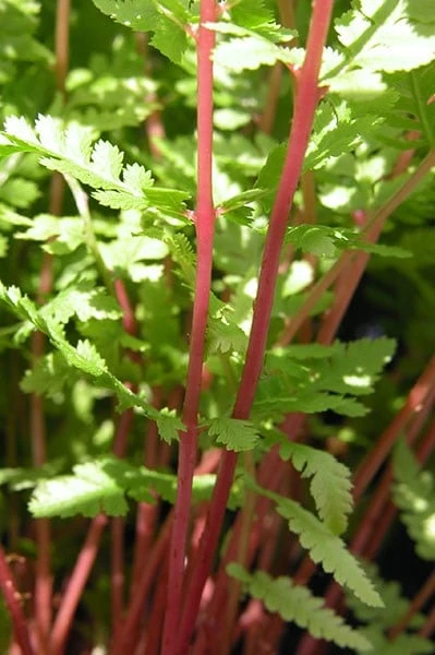 - Garden care: Incorporate lots of well-rotted leaf mould, composted pine needles or garden compost into the planting hole. In cold areas in late autumn protect the crown of the plant with a dry mulch of straw or bracken. It can take a 2-3 years for these ferns to mature and develop the striking red stems.