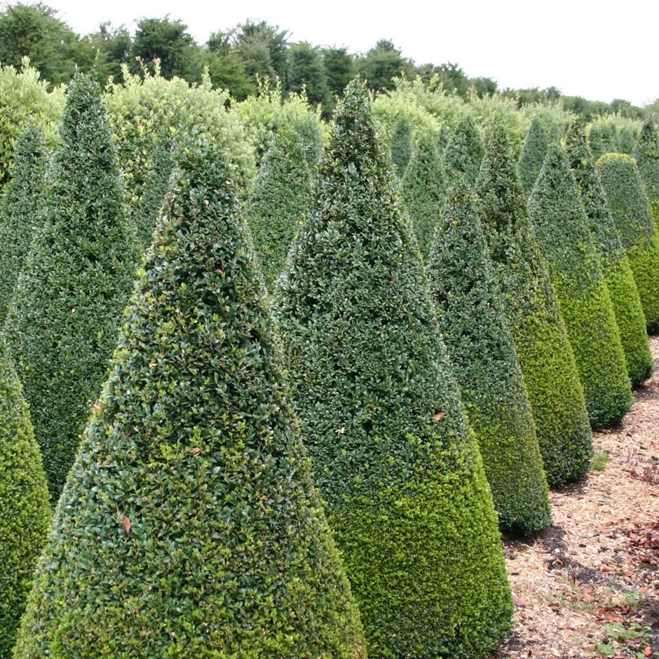 These evergreen box cones are ideal for a formal garden or courtyard. Best planted in fertile, well-drained soil in a partially shady site, they’re perfect for punctuating the end of a dwarf hedge or for use in pairs for flanking a set of steps, a doorway or path.