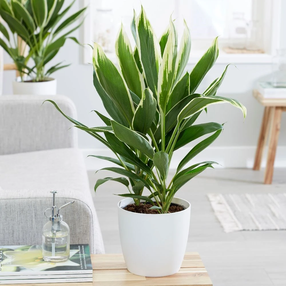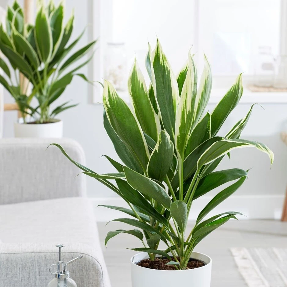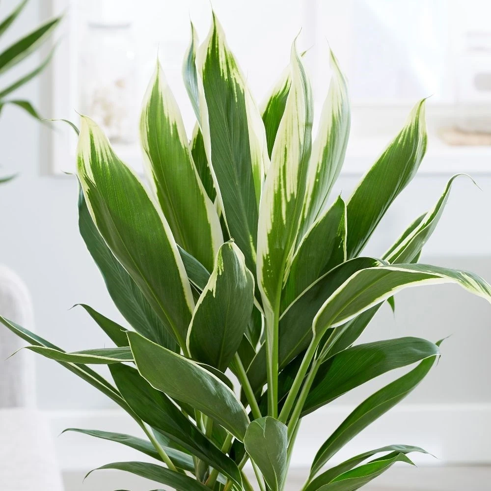 This house plant is valued for its lustrous variegated foliage, which is an irregular mix of cream and green – and unlike many of the other white-variegated cordylines, the leaf margins of this one rarely get scorched. Another bonus is that there are three plants in each pot, so they already look nice and bushy.