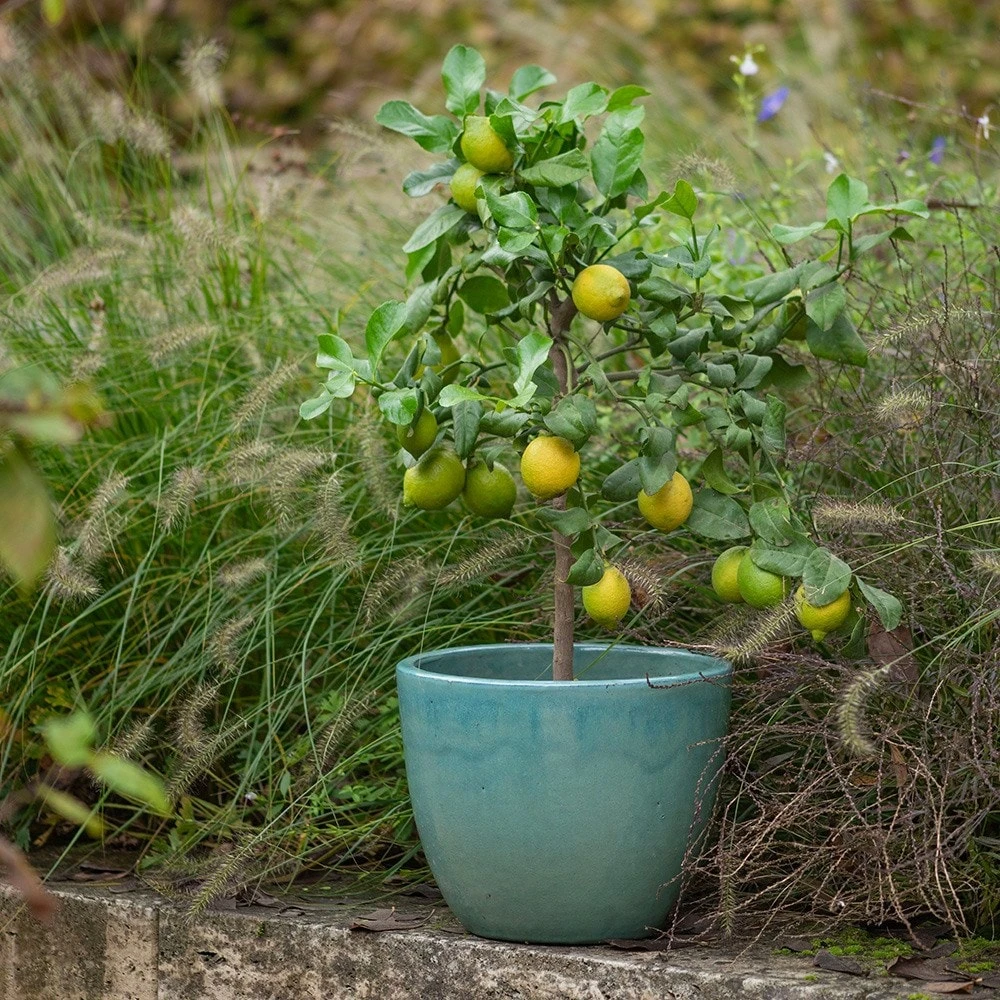 These classic Vietnamese glazed ceramic pots are great for bringing extra colour and vibrancy to the garden. The aqua blue finish is blended rather than solid colour which gives the glaze more life and texture.