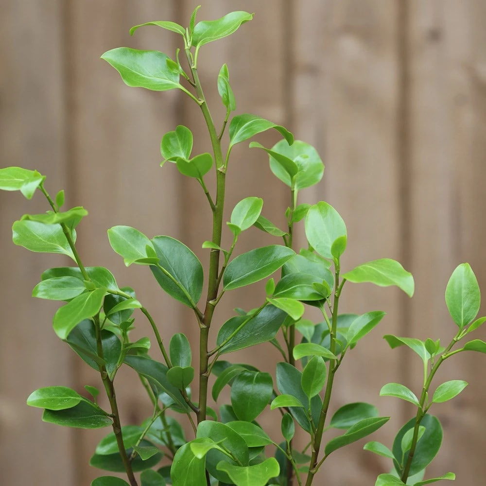 A dense, shapely, evergreen shrub with an upright habit and lush, apple-green leathery leaves. It is ideal for growning as a specimen plant in the border and also makes an excellent hedging plant.