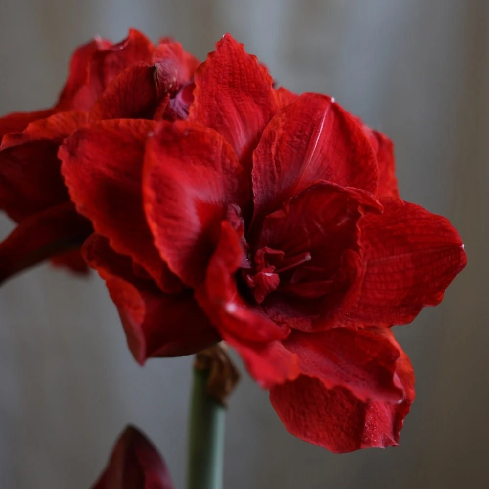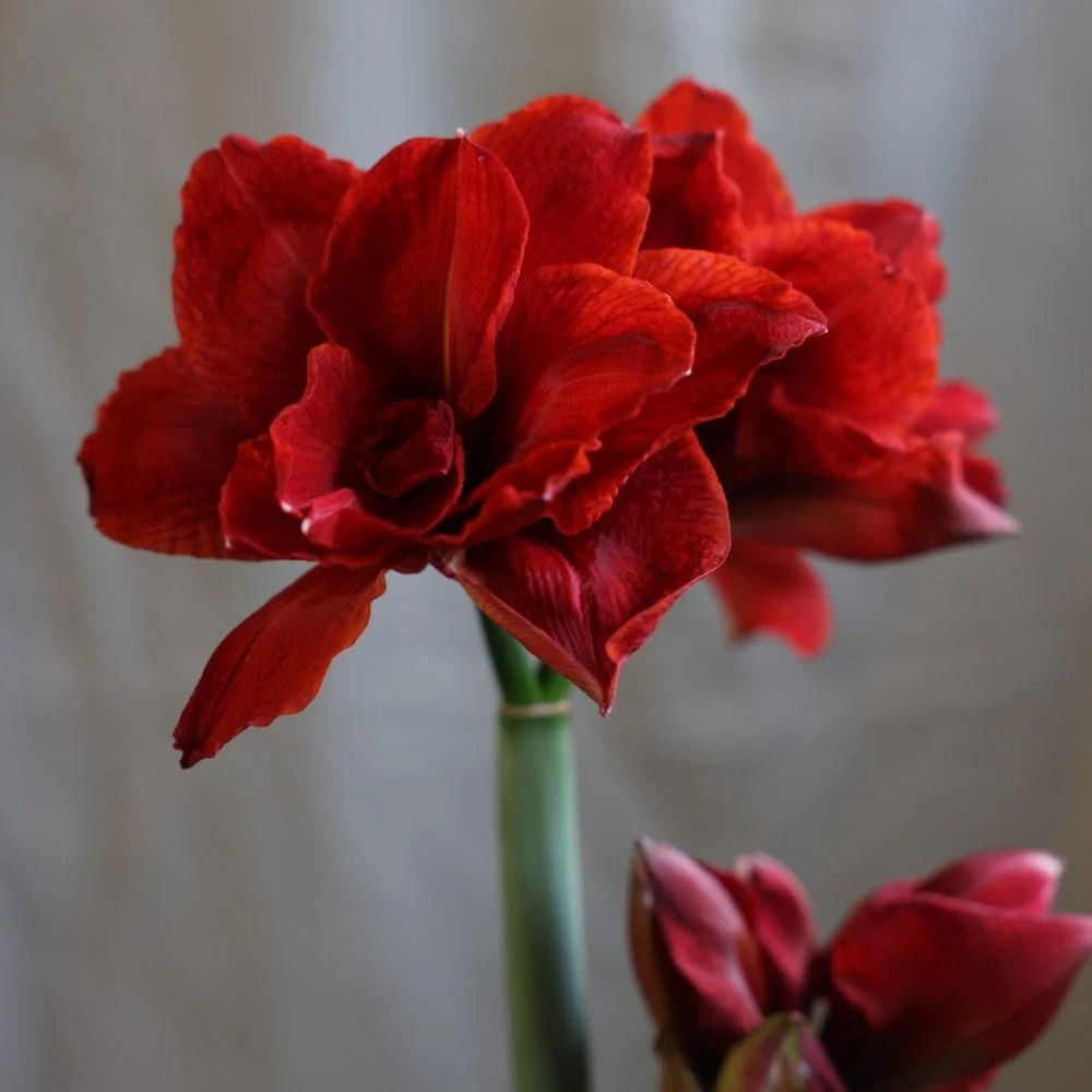 Once flowering has finished, cut off the flower stalk 5-10cm above the bulb – don’t cut off the foliage. Water when the surface of the compost is dry and feed fortnightly with a balanced liquid fertiliser. Reduce and cease watering from early autumn and move to a dry, dark spot for a few months allowing the foliage to die back, simulating the dormant, dry season of the plant’s native South America. In November bring it back into the light and begin watering again. Old foliage should be removed, though take care not to remove any new shoots. Expect flowers in six to eight weeks.