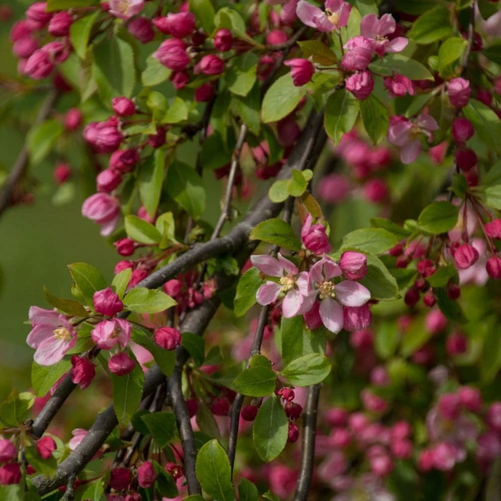 Forming and umbrella-like shape with its semi-weeping stems, this compact crab apple makes a handsome specimen in smaller gardens, but it can also be grown in large pots provided it is kept well fed and watered. Producing clusters of soft pink buds, these open in mid- to late spring to scented white flowers, which are then followed by bright red fruits. Then, adding even further interest, the green foliage will turn shades of yellow and soft orange in autumn beofre it is shed.