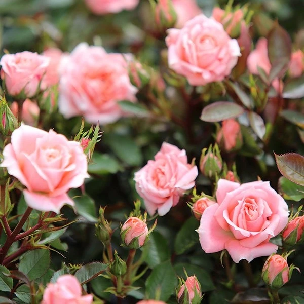 Noted for its abundance of many-petalled copper-pink flowers, which have a deliciously spicy scent, this pretty patio rose is ideal for pots, but can also be used to line the edges of a sunny path or border.