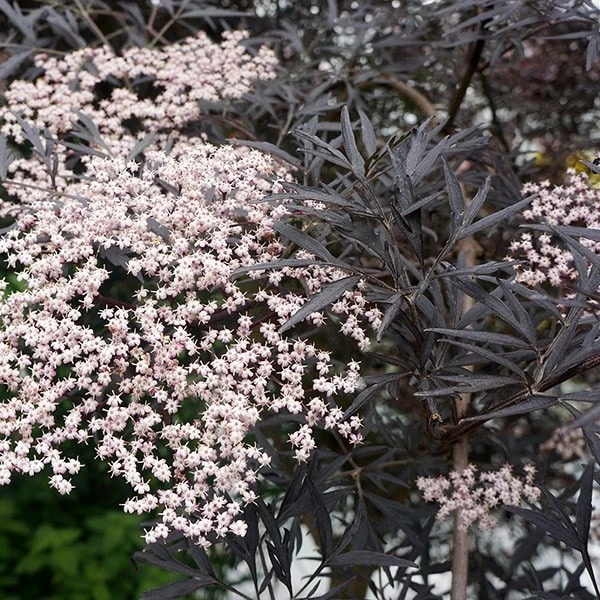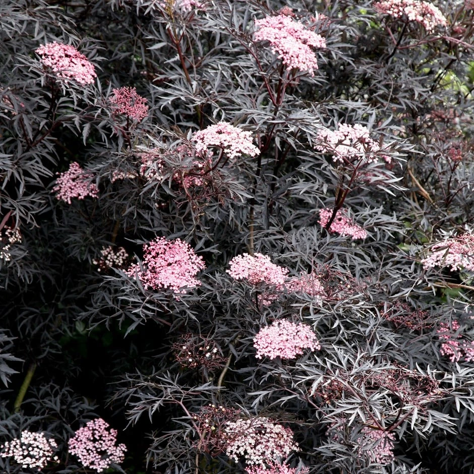 Striking almost black, dissected foliage and from May to June pale pink, musk-scented blooms emerge from beautiful creamy-pink buds. It makes an excellent shrub for all styles of gardens and has the added bonus of having blackish-red berries in autumn which are attractive to birds and when ripe can be used to make a wonderful wine. For best foliage colour grow it in full sun, otherwise it can fade to a greenish-bronze.