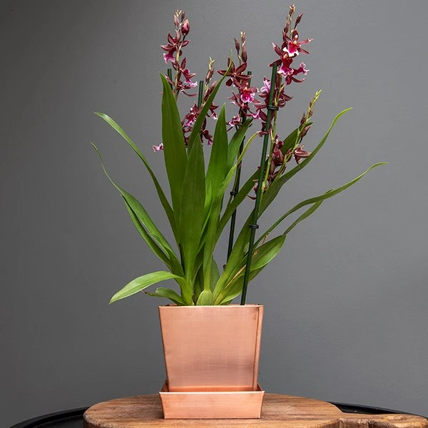 Modern and minimalist, these brushed copper pots make ideal planters for herbs, spiky cacti and lush ferns. Place them in a well-lit spot where the light will play off the satin surfaces to enjoy a sense of sunshine all year round. Supplied with a matching copper tray to protect indoor surfaces and keep plants watered.