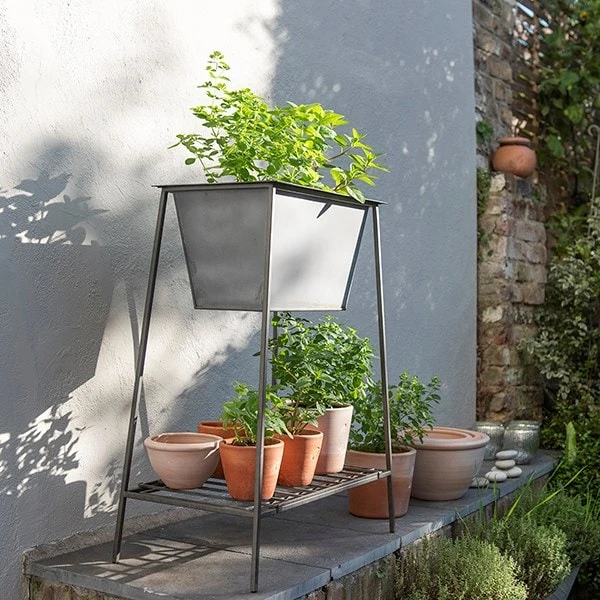 A new addition to our range of planting solutions designed to make the most of smaller spaces including patios and balconies. Fill the trough with your favourite herbs, salad crops, tomato, edible flowers or strawberries and use the metal shelf for small pots or storing seed trays, hand tools and other useful bits.